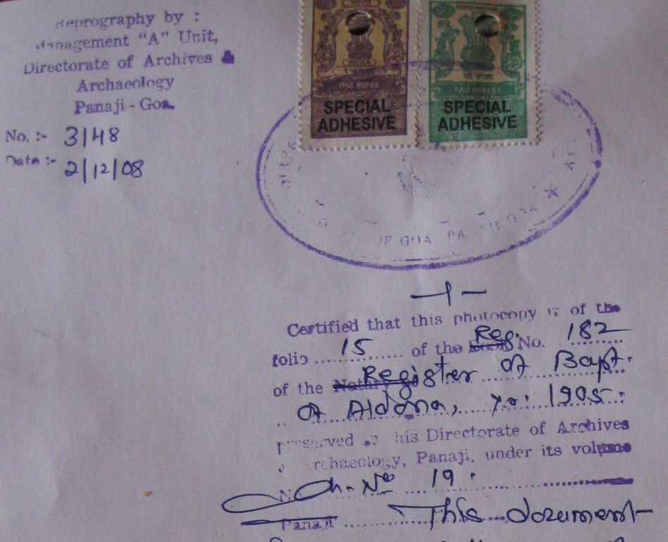 marks of verification on documents issued by DAAG, Panjim