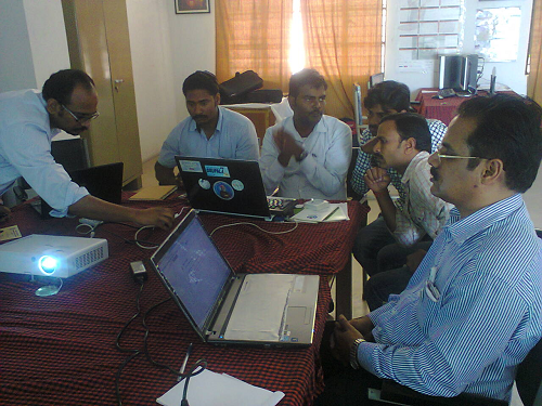Rahmanuddin and Dr. Rajasekhar giving hands-on training to edit Telugu Wikipedia